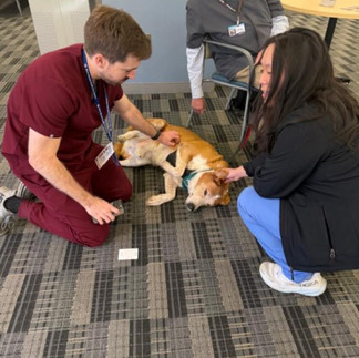 This was the first time we had Big Boy visit at the VA. We meet in a large room and had three of their favorite dogs there as well, Birdie, Dexter and Charlie. But everyone had great anticipation to meet a therapy cat! This first hour was spent in the main building and then we walked over to the Recovery / Behavioral Health unit. We were there for the first time and now know we will have to go every visit! We walked outside so the dogs had their break. We were in a very small room but the pets did great and so many staff and clients came in to meet us.