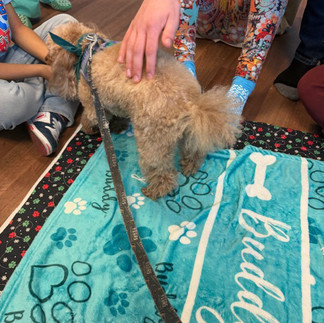 Buddy is an outstanding therapy dog and is comfortable in all types of environments and with all populations. But he especially shines when working with teenagers. Today we were at one of the treatment centers we visit and Buddy was just so happy. We see two unity back to back with a brief break in between. The first group is split into two sessions and we had girls and boys today. Some of the kids knew Buddy and some were new to us. Those who knew him shared things about him with the newbies. I am always amazed how much they remember and go into great detail about his background. Today they shared so many facts and then went into what he likes the best. Buddy was totally in his element and we had a few breakthroughs. Kids who initially did not join the group or were reluctant to interact with Buddy, changed their mind and couldn’t resist petting him. This was a spectacular day for everyone, especially Buddy!