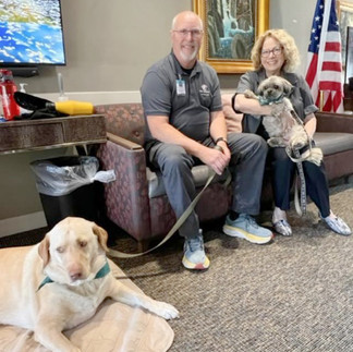 When you join Pet Partners of Las Vegas you can volunteer at any of our numerous partnerships. We have educational, wellness, corporate, and healthcare opportunities across a broad range of populations and environments. But you can also select somewhere to visit on your own and we roll that facility into our roster and present them with our insurance etc. Jim and Dude wanted to visit at Avenir Senior Living and have become such an important part of their community. Everyone knows Dude ad Dude knows everyone. He is right at home there. Today I brought Charlie for a site visit as we hope to expand their therapy animal presence with additional teams down the road. It is good to have a smaller lap dog for this memory care population as well as a dog like Dude. Charlie was a great hit. For some of the clients we did an assisted hold and some were able to have him on their lap. Thank you Jim for finding this lovely place and we are so proud of all you do for your community.