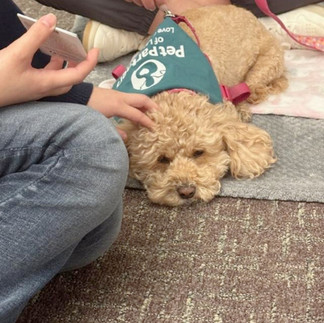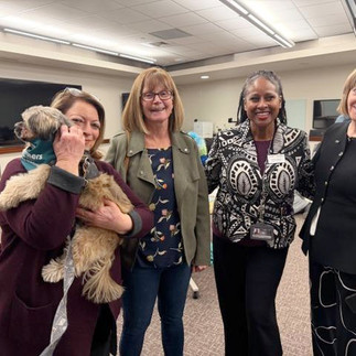 We are in our 13th year visiting with students at UNLV in Lied Library and it gets more exciting each time. This visit was right before the third anniversary of the active shooter situation so many students came to see us because they were there as we were during the lockdown. But we had even more freshman and sophomores who are new to our teams and that was great fun for them. We had seven therapy dogs in the room and the students went from one to another, meeting them and collecting their trading cards. The university had some very special guests that day and they came in to meet us … and of course Charlie wanted to have a photo taken with them! More photos are coming in today so we will share those with you but for now here’s a quick look at the event.