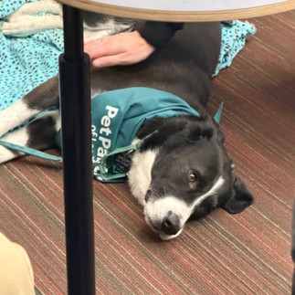 One of our favorite ongoing wellness visits is with the students at the UNLV School of Dental Medicine. We go monthly and the crowds are getting bigger each time. This week we had a therapy cat Big Boy with us! The line to meet him was all the way down the hall. We meet in a rather small lounge area so we are limited to the number of pets we can bring. And Big Boy got his own space in the hallway which was perfect. Any chance we get to help people de-stress and relax is why we do what we do.